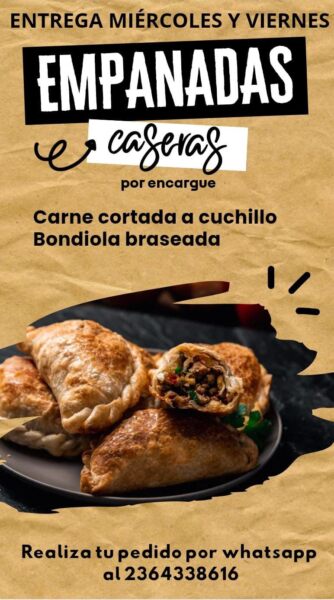 Durante la semana se estará llevando adelante una venta de empanadas y panes elaborados de manera artesanal, pensados especialmente para personas que requieren cuidados en su alimentación, en particular quienes padecen hipertensión arterial, diabetes e insuficiencia renal.