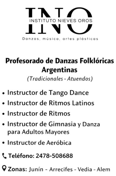El Instituto de Danzas, música y artes plásticas INO, de la profesora NIEVES OROS, te invita a sumarte a una amplia propuesta de talleres artísticos y recreativos para todas las edades.